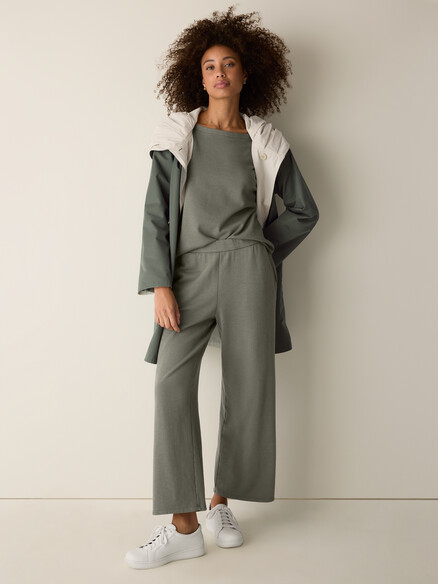 Style Tip: Keep Eileen Fisher athleisure looking polished by pairing one relaxed piece (like soft joggers or a boxy top) with one structured element (such as a long cardigan, tailored jacket, or sleek shoe) for instant balance and sophistication.