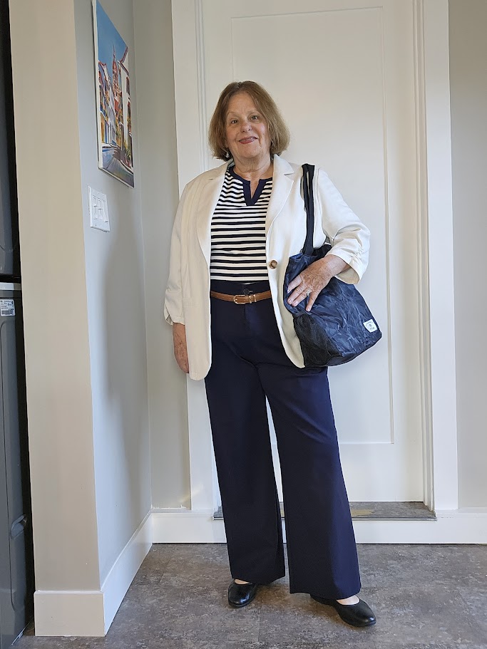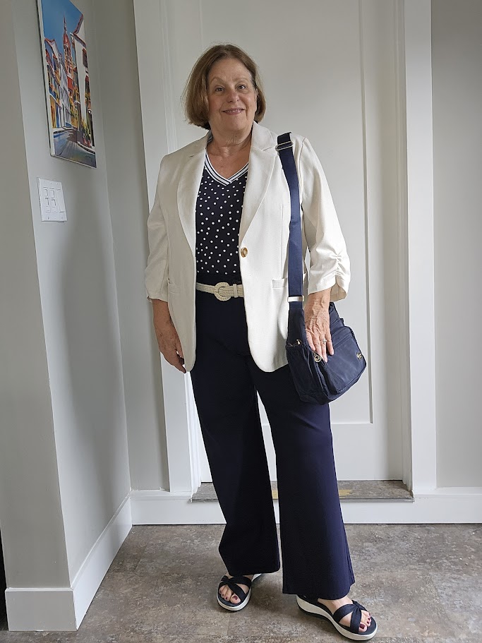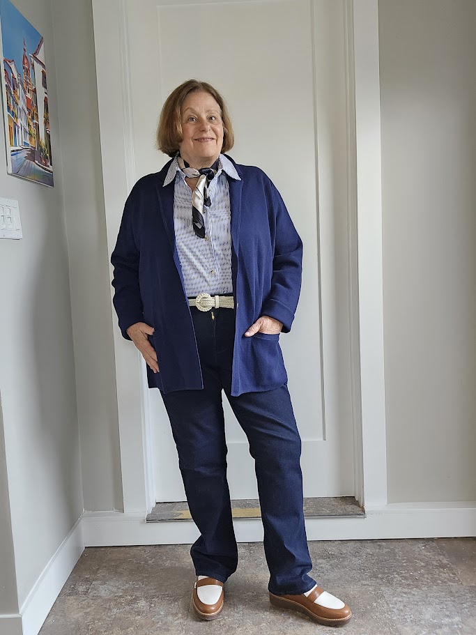 I chose navy as my primary color because I believe it is a lively alternative to standard black and is a neutral color. Navy looks rich and fantastic on almost everyone, and now that I’m in my 70s, I need something that will not make me look washed out.