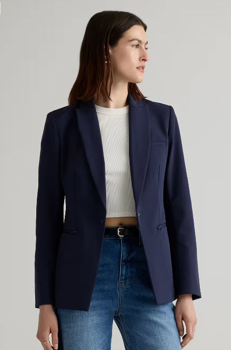 The length of your blazer depends on your height and body shape. If you want to cover a tummy or large hips, wear a longer blazer. However, if you are petite, that could make you look shorter.